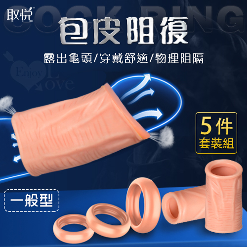 滿1000元贈品 取悅 ‧ Cock Ring 包皮阻復5件套裝組 - 一般型﹝運動+日用+夜用﹞