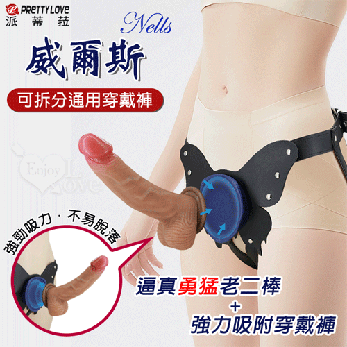 PRETTY LOVE 派蒂菈 ‧ 威爾斯 Nells 矽膠逼真勇猛老二棒+強力吸附穿戴褲﹝可拆分通用﹞