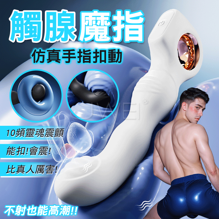 魔指前列腺.10頻靈魂震顫 螺紋摩擦仿真手指爆爽前列腺刺激器【白色】