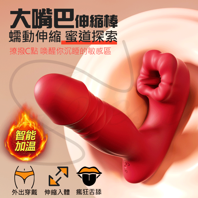 絲西娜.10頻伸縮咬震 吸盤紋路紅唇舌撩按摩器