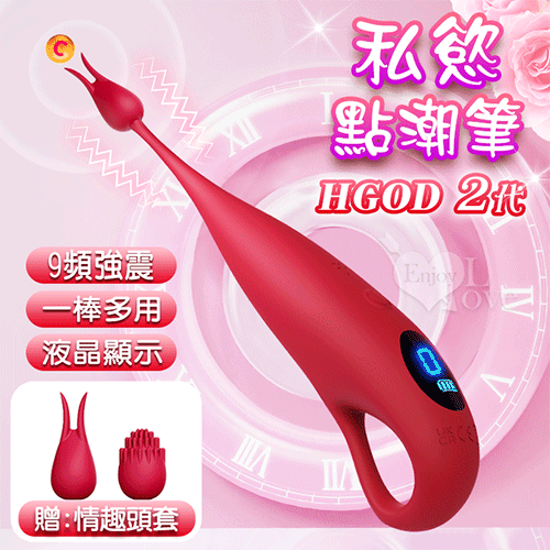 Hgod 2代私慾點潮筆 ‧ 9頻聲波高頻震動 雙頭套秒高潮按摩組﹝液晶顯示/舒適靜音/花樣玩法﹞