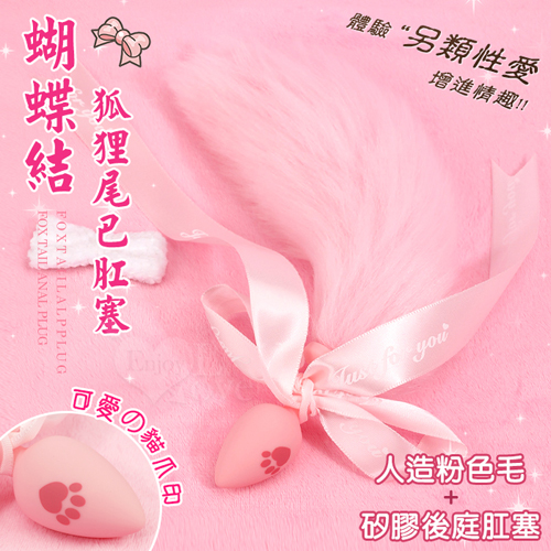 激性扮演 ‧ 蝴蝶結狐狸尾巴 可愛猫爪印親膚矽膠肛塞﹝粉紅﹞