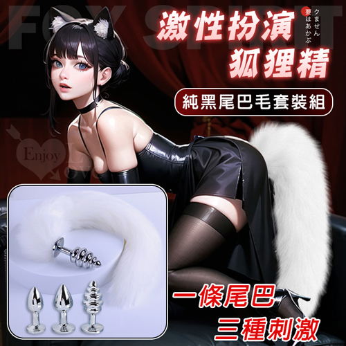 激性扮演狐狸精 ‧ 3款不銹鋼後庭肛塞+純粉尾巴毛套裝組﹝可組裝拆卸﹞