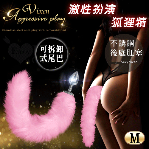 激性扮演狐狸精 ‧ 不銹鋼後庭肛塞+尾巴毛 - 粉﹝M 可組裝拆卸﹞