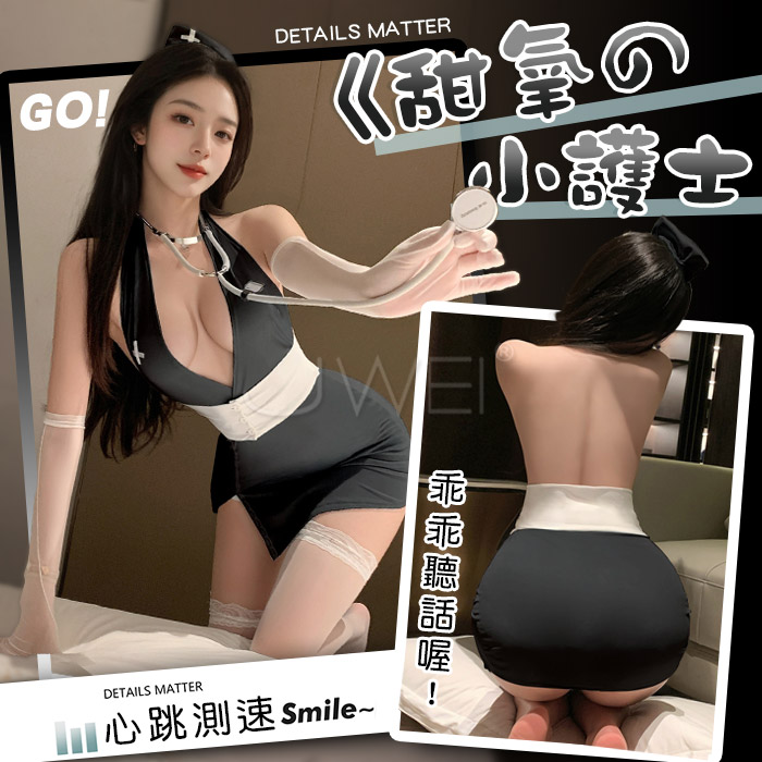 | 火辣秘書.掛脖縷空高開衩分體式秘書套裝3件組(白+黑)