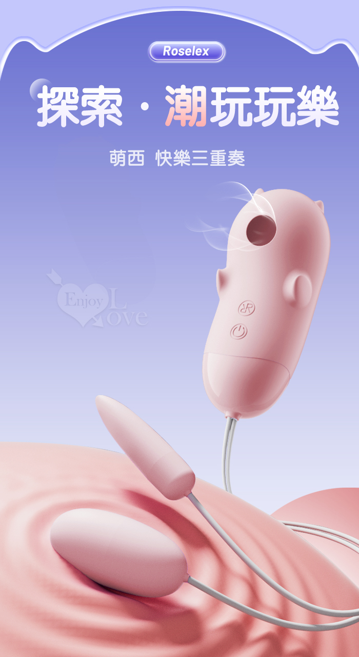 ►您現在的位置:首頁>ROSELEX 勞樂斯 ‧ 萌西 快樂三重奏 吮吸+圓尖組合按摩器 ﹝10頻調控+內外快感+細膩絲滑﹞淺粉