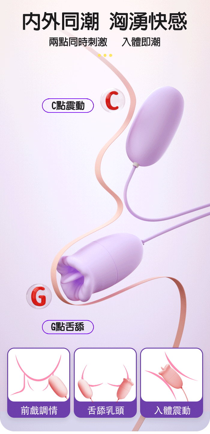 ROSELEX 勞樂斯 ‧ 蜜吻圓舔款~10頻酥震+舌撩+吮吸三合一組合按摩器﹝時尚耳機盒+USB充電﹞紫