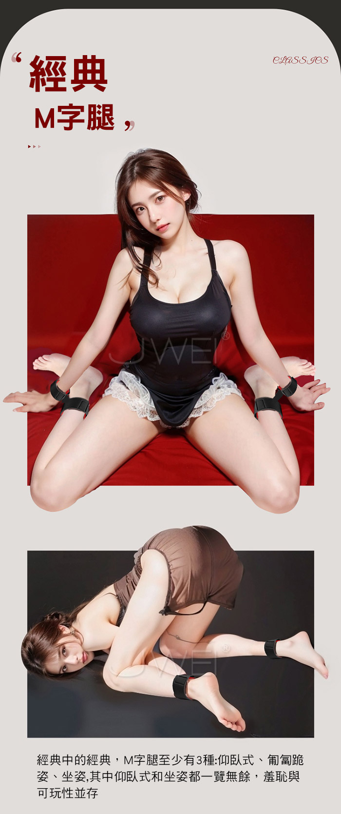 不論是正面束縛、背面反手束縛 、或是雙腳束縛等