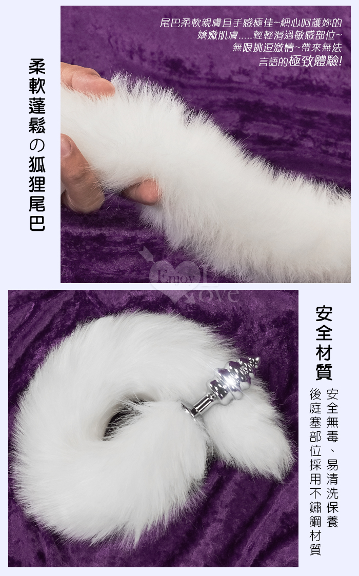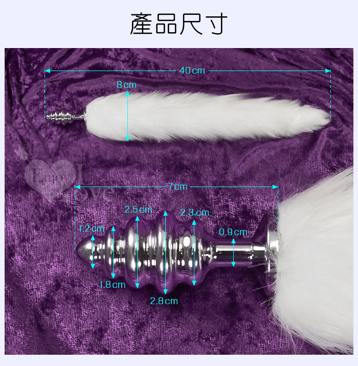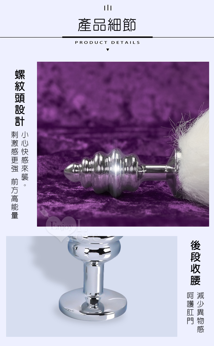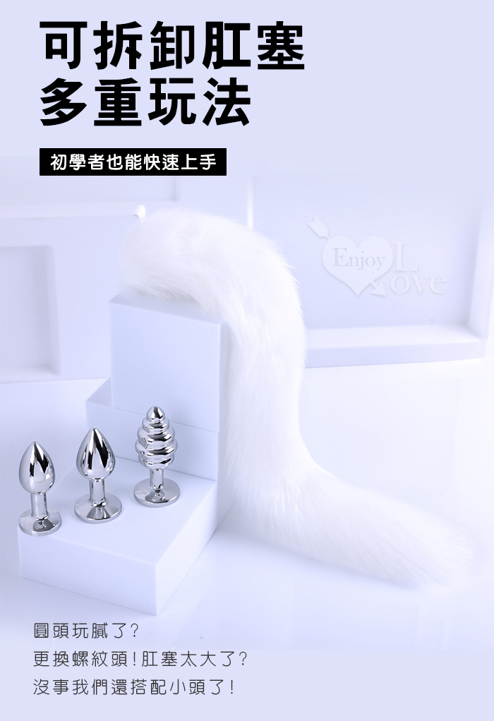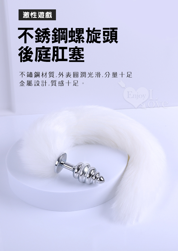 Sporting激性扮演遊戲 ‧ 人造毛尾巴+不銹鋼螺旋頭後庭肛塞 - 白﹝可組裝拆卸﹞