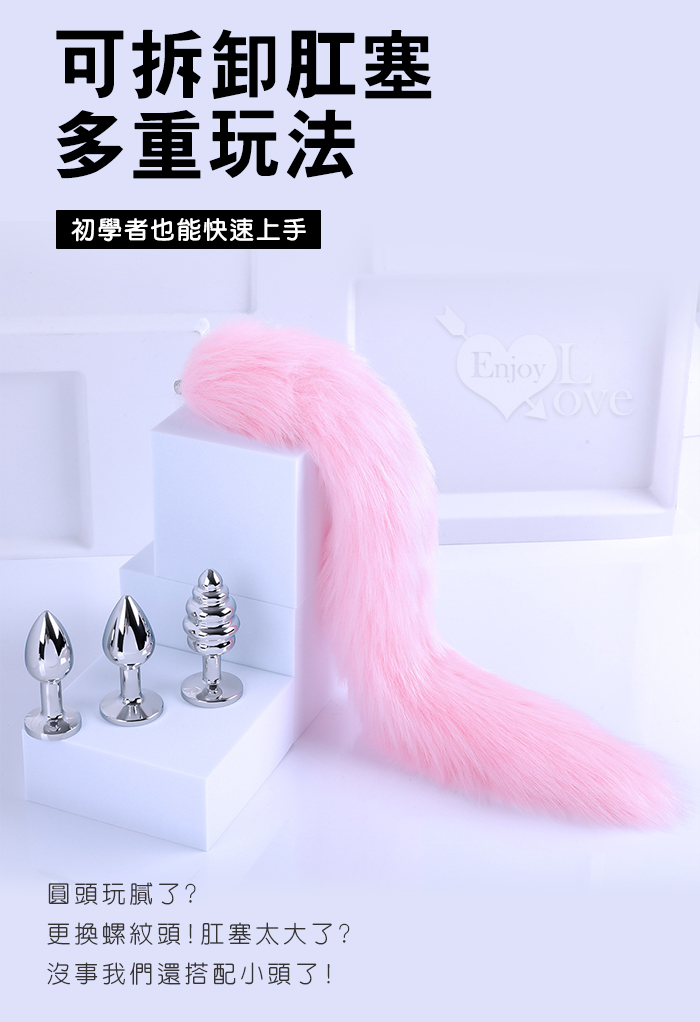 Sporting激性扮演遊戲 ‧ 人造毛尾巴+不銹鋼螺旋頭後庭肛塞 - 粉﹝可組裝拆卸﹞