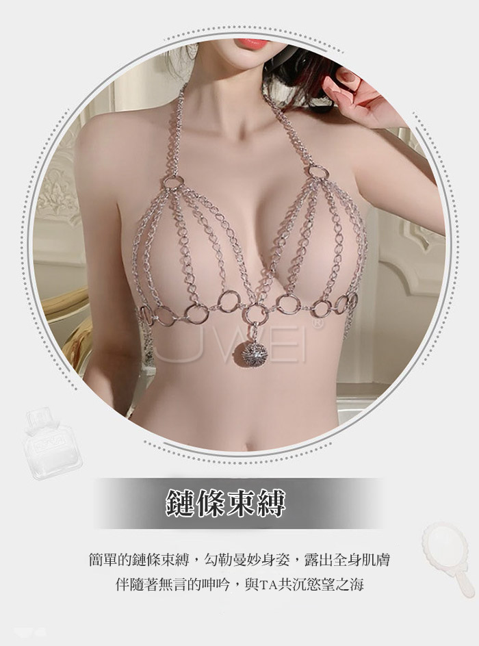 | 火辣熱鍊.性感三點分體式鎖胸束縛鈴襠金屬鏈衣