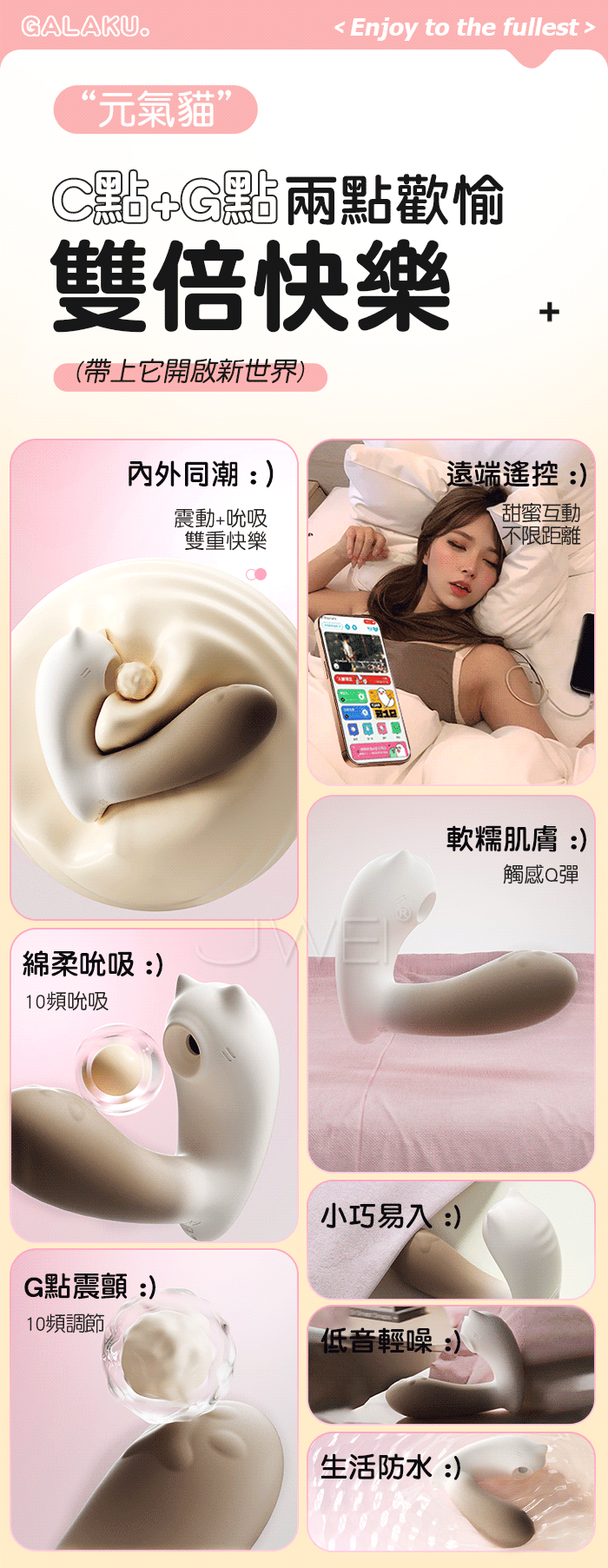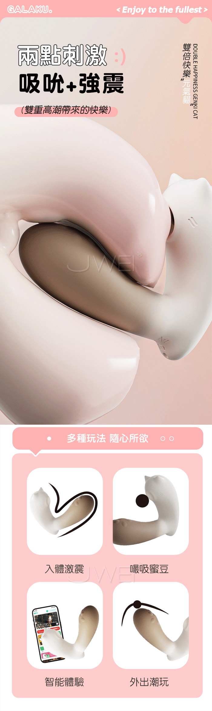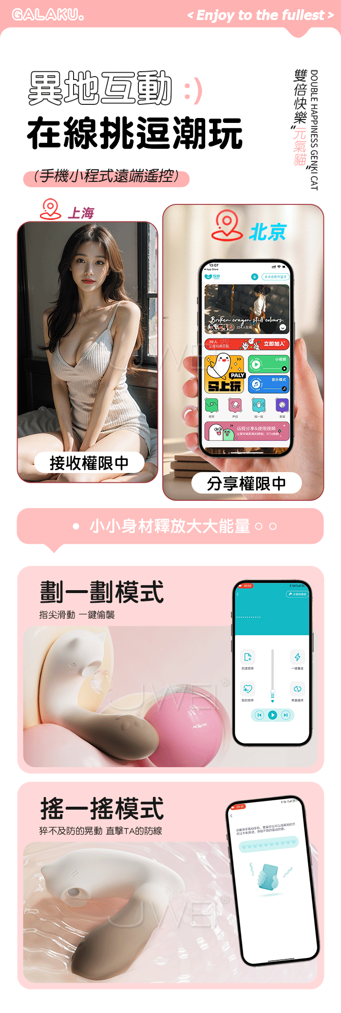 ►您現在的位置:首頁>GALAKU.元氣貓 10頻吮吸+10頻震擊G點 APP遠距遙控萌趣穿戴跳蛋