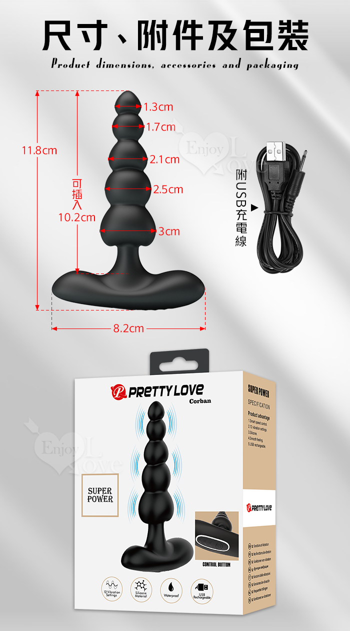 | 派蒂菈 ‧ CORBAN 科爾班 12頻強力震動~拉珠後庭按摩器﹝男女通用/柔軟矽膠/輕鬆入體/USB充電﹞