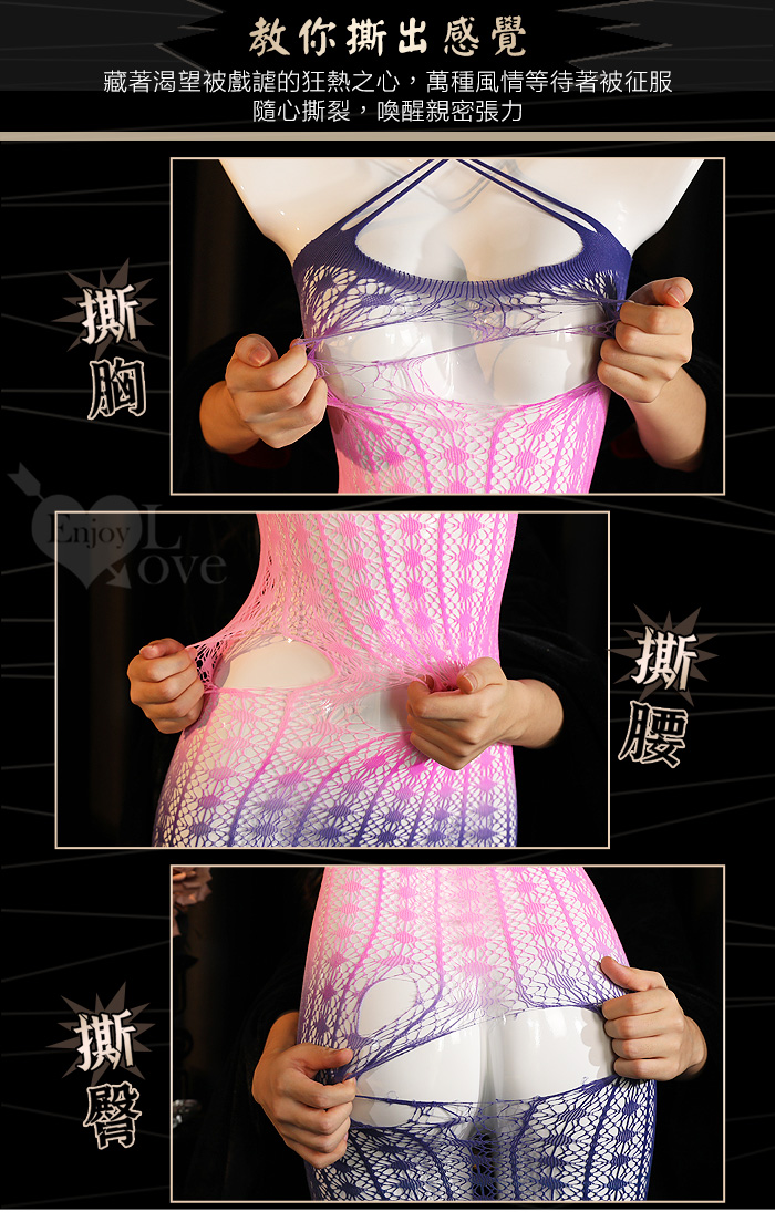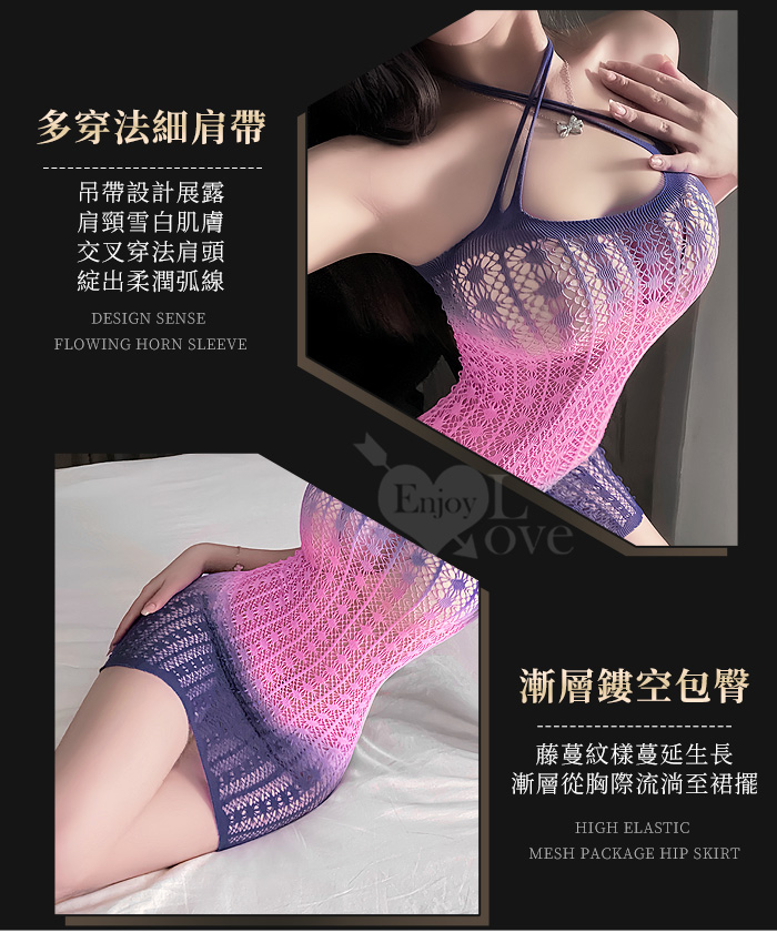 ►您現在的位置:首頁>可撕鏤空網紗連身裙|漸層彈力包臀睡衣・交叉肩帶多穿法