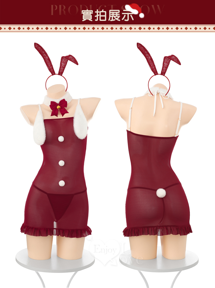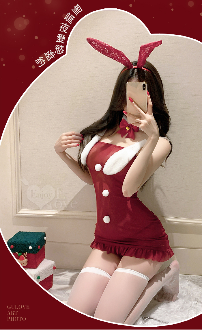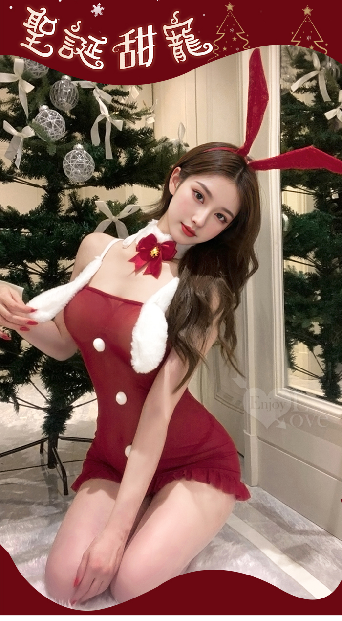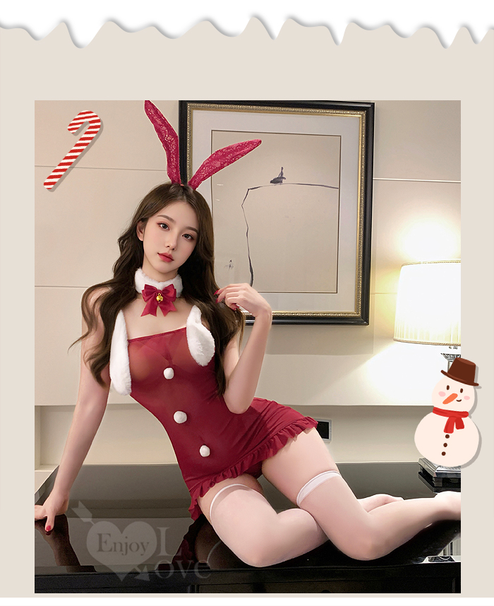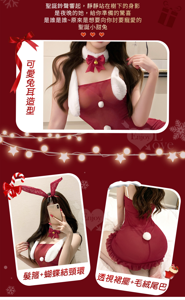 聖誕魅力/新年狂歡派對!甜美透視毛球點綴純慾奶蓋掩胸包臀連身裙四件式套裝